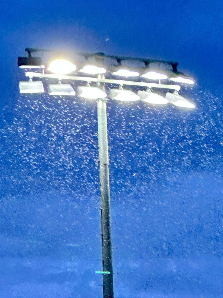 The evening featured some interesting weather as well; it was pretty hot, in the mid 80s, at game time but rain threatened throughout and some pretty cool clouds floated through. Then it rained for a bit. We also were treated to a really nice sunset…but only if you climbed to the top of the grandstand and looked backward over the parking lot. Not as aesthetic a ‘ballpark sunset’ as you might dream up, but pretty nonetheless.