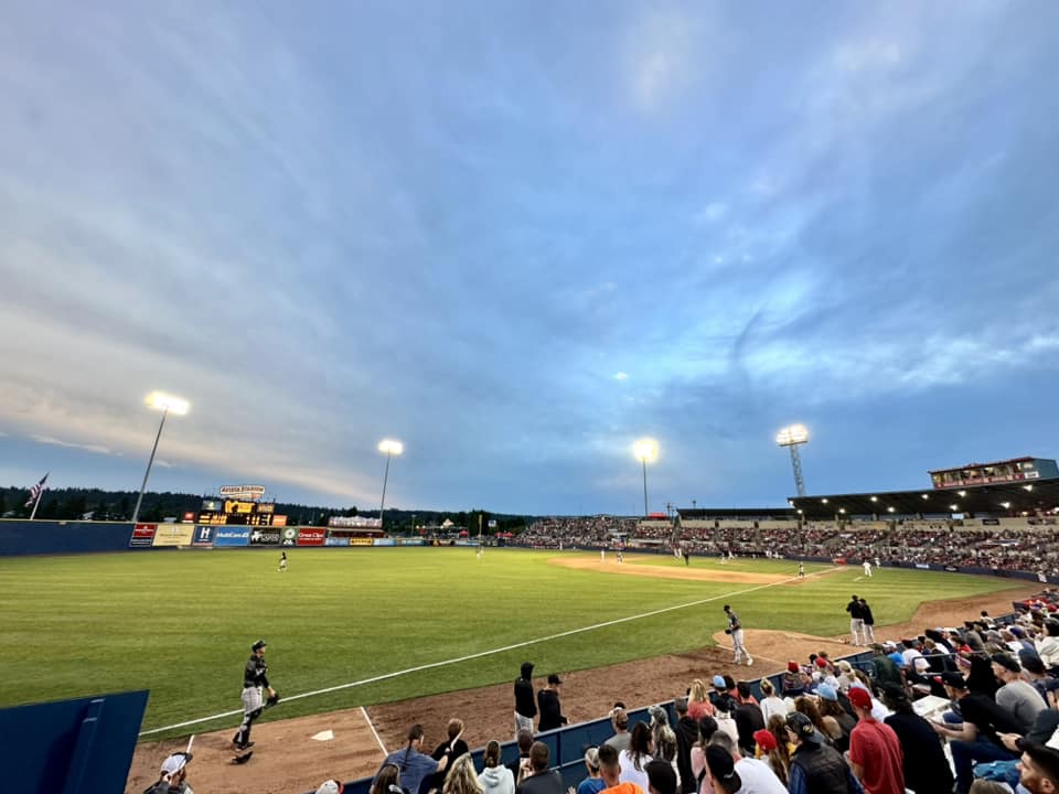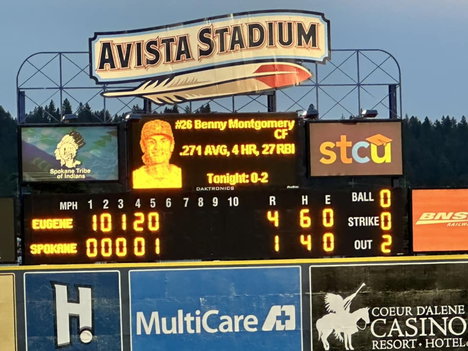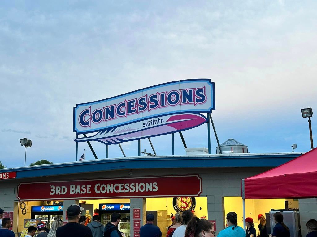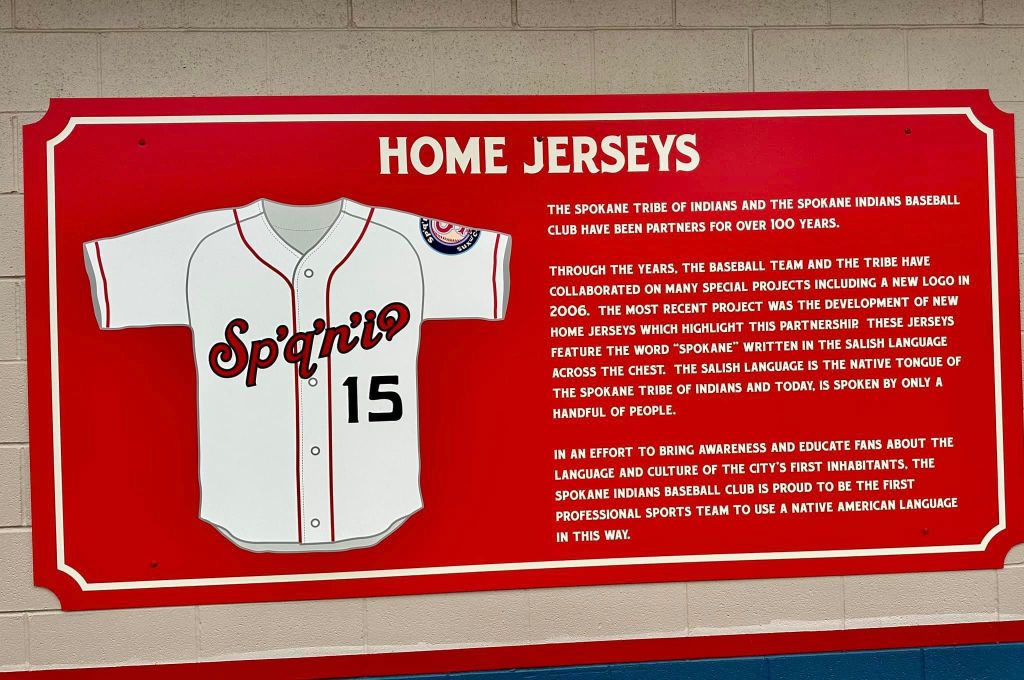 I should also mention that Spokane’s team is, indeed, still known as the Indians, which feels a little surprising with most other similarly-named teams changing monikers and mascots. But it seems as if there is a pretty strong relationship here between the indigenous tribes and the ballpark: The ‘Spokane’ name on the jersey is written in Salish, the language of the Spokane tribe, as is much of the signage in the stadium.