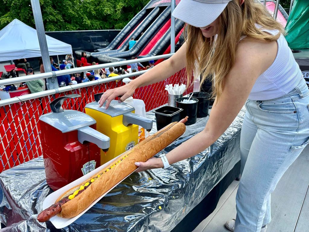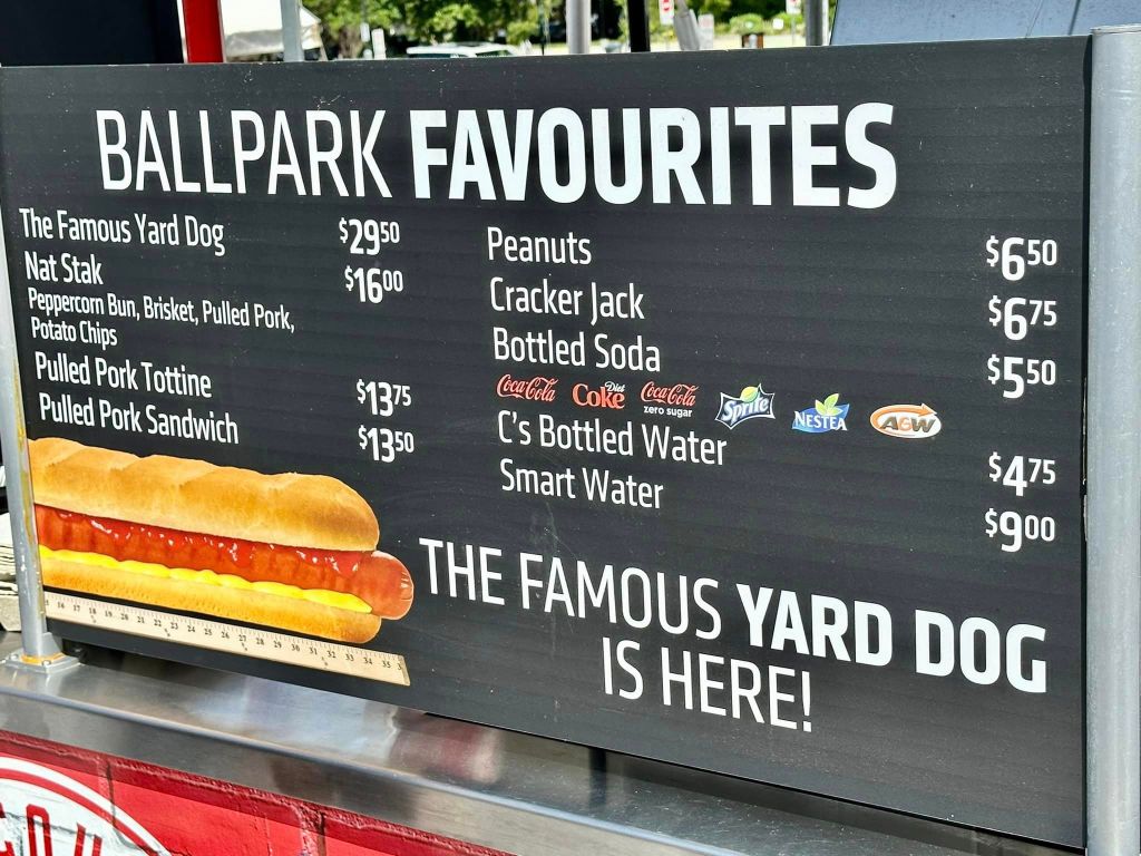 We wandered, too, of course, coming across a bunch of fun Blue Jays fans, and also one of the best food finds on the trip: the Yard Dog: a three-foot-long hot dog that’ll run you 30 bucks Canadian. A fair number of people were ordering them (although not us: Jude and I were still hot dog hungover from $2 dog night on Friday). They pretty much feed the whole family, so honestly they sort of seem like a pretty good deal for the money.