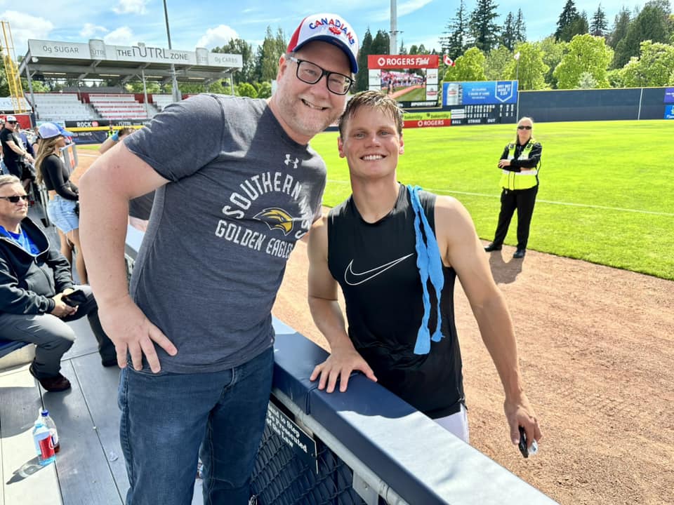 It wasn’t without challenges, but Jude and I made it to Vancouver and had a great time at the Canadians’ ballpark, where we saw Paly grad Josh Kasevich go 2-for-4 with a double, a run scored and an RBI in a 5-1 win over the visiting Hillsboro Hops. It was great catching up with Josh after the game; he was a student on my Viking Sports Magazine staff a few years ago (five, I think?), then played at University of Oregon, before getting drafted in the second round by the Toronto Blue Jays last year. Thus far, he’s been doing well, hitting over .300 and playing a solid short stop.