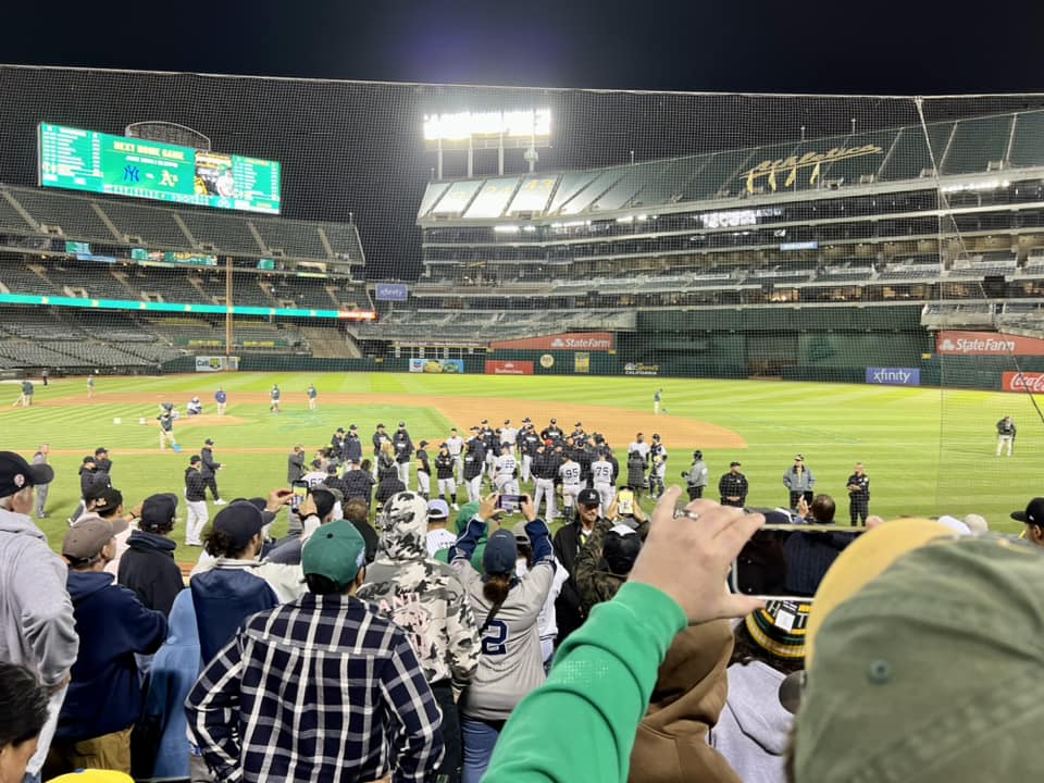 - And the 24th-ever perfect game in the history of the game. The A’s lost 11-0, meaning I’ve got a .667 winning percentage in games I’ve seen in person, but the A’s have been outscored in those three games by a count of 13-4. I’m by no means a Yankees’ fan, and it was a little annoying to see so many of them at the game haha, but it was cool to see how happy they were at the end.