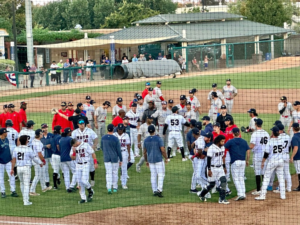 The first happened in the fifth inning, when the benches cleared. Something caused it. I don’t really know what it was, nor did anyone else in the stands. The Nuts were up 5-0 and cleanup hitter Gabriel Gonzalez, a 19-year-old undrafted Venezuelan kid hitting .350, had just swatted a bomb, so I’m guessing something got said by someone. As is typical, everyone hurried out to the middle of the infield and then stood around for a while, before heading back to their respective spots. But we all got real excited for a minute there.