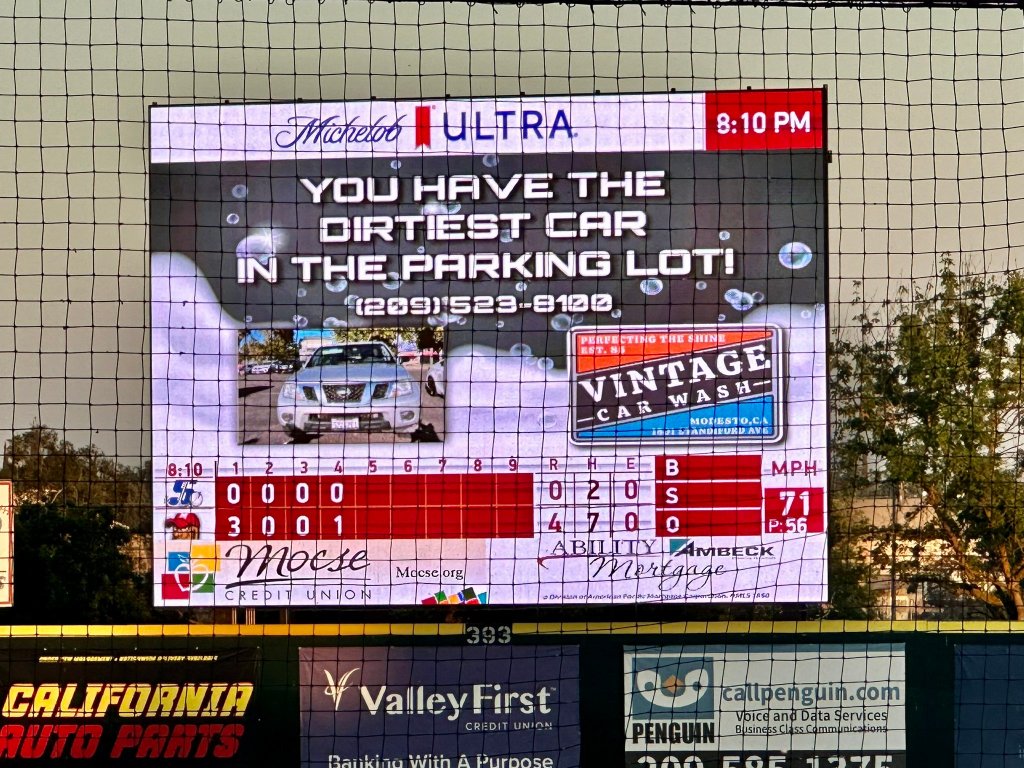 Driving inland in California is probably always going to be a weird journey for me. Is it like that for everyone? You leave the Bay Area and within about 20 minutes, assuming traffic isn’t insane, you’re all of a sudden on the moon. Mountain passes and desolate ranch land, then endless miles of farm fields and orange groves. By the time you’re close to Modesto (or most of the other inland cities), you’re wondering if the city even exists. I swear we were 10 minutes from the stadium and feeling like the only people on the planet.