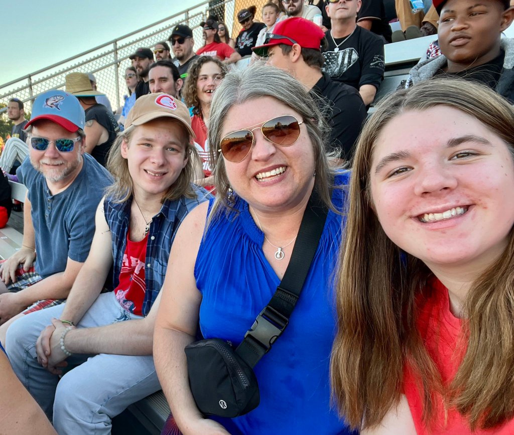 But then we got right up to the ballpark and saw that everyone in town, I think, was at the game. One of the parking lots was already full, and the other was getting there fast. Turned out to be a nice game day crowd: 3,943 in a ballpark that holds 4,000. And plenty of red, white and blue!