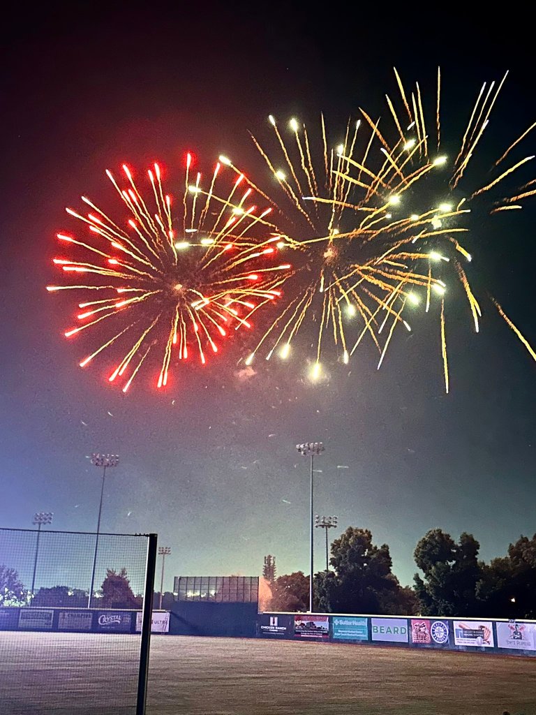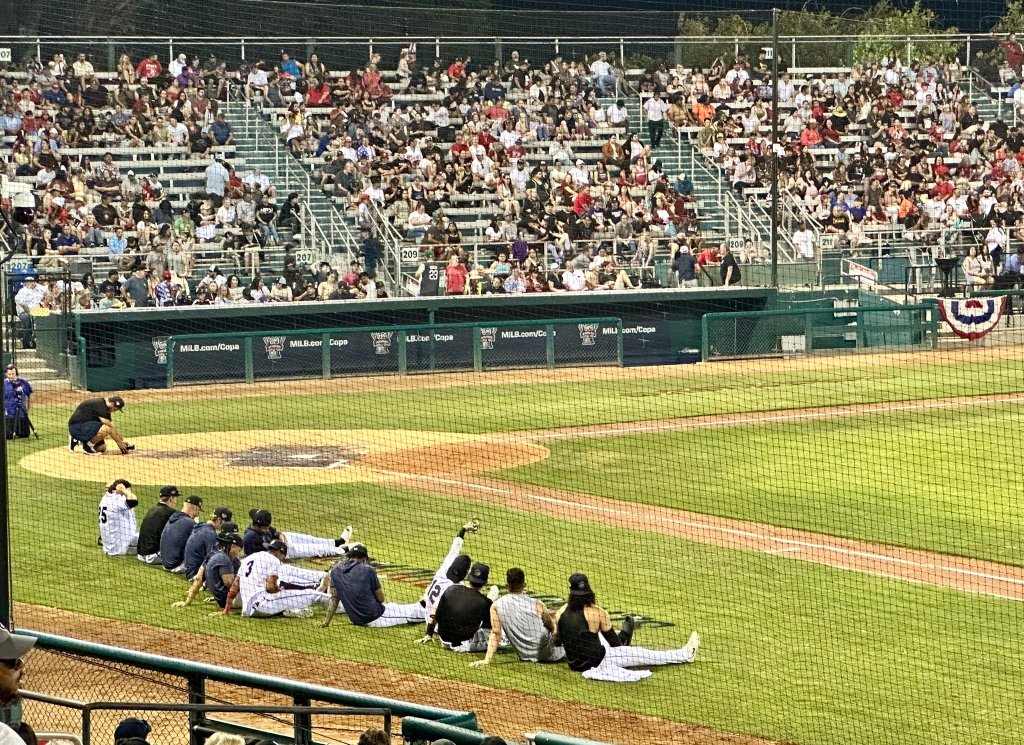 The Nuts (Mariners low-A team) ended up beating the Stockton Ports (Oakland A’s affiliate) 8-3, and we settled in to watch the fireworks. The show was fun, but what made it even cooler was the fact that the entire Modesto team sprawled out along the first base line with their phones to watch the show. It was another of those small town minor league things that you just don’t get to see at the Major League level..