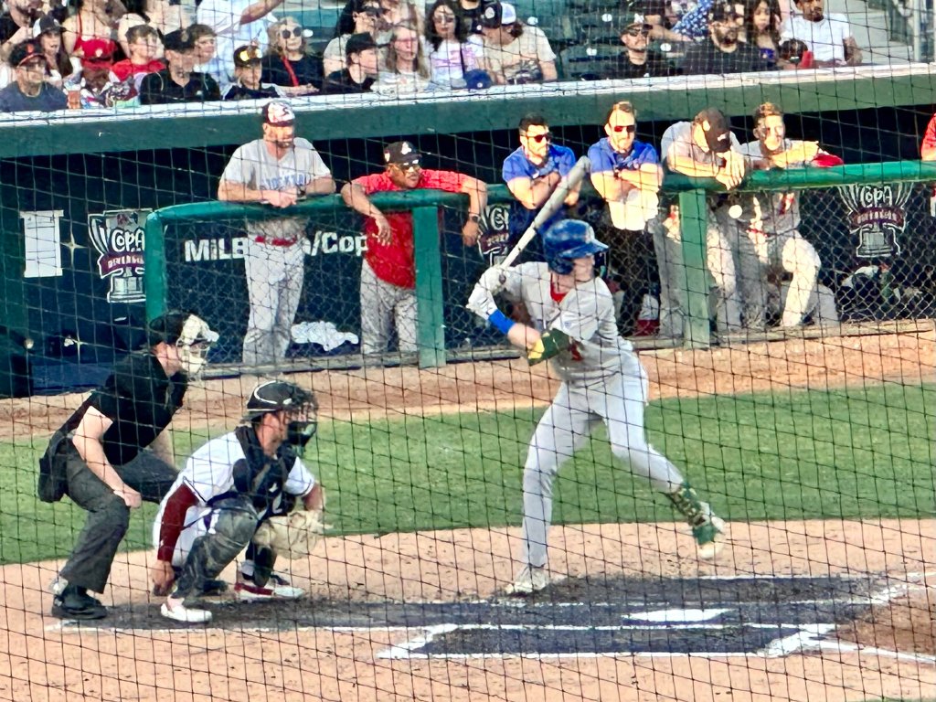 The second was in the bottom of the seventh. After the Ports had cut the deficit to 5-3, The Nuts number-9 batter, second baseman Justin Lavey drilled a pitch down the left-field line. What seemed like a rather standard stand-up double took a VERY interesting right-hand turn off of the corner wall, bouncing 90-degrees directly into center field. And it bounced hard; hard enough that Lavey wasn’t content with a triple and made the decision to head for home. A nice relay made the play at the plate super close, but Lavey was ruled safe and the Nuts cheered his inside-the-park home run.