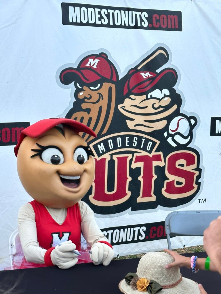 Speaking of, there are three Nuts mascots: Shelly the Pistachio, Wally the Walnut, and Al the Almond. They represent the types of nuts grown in the Valley, although I’m not entirely sure if those are the ONLY nuts grown in the Valley (no Petey the Peanut?). They definitely had fun and the crowd dug them, to the point of even getting autographs.