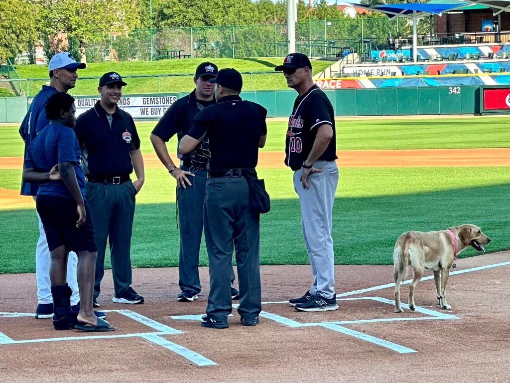 Before the game started (like, 10 minutes before), the players were all signing autographs for little league teams, and they were gracious enough to do some interviews with our students; it was a cool level of access for them. We also saw an amazing rendition of the National Anthem, and got to see one of the world’s cutest dogs go out for ground rules with the Redhawks manager. It was a little ironic, considering most of us assumed that an actual dog on the field would be a member of the team with ‘dogs’ in their name. But apparently the Redhawks have a pup as a member of their traveling party.