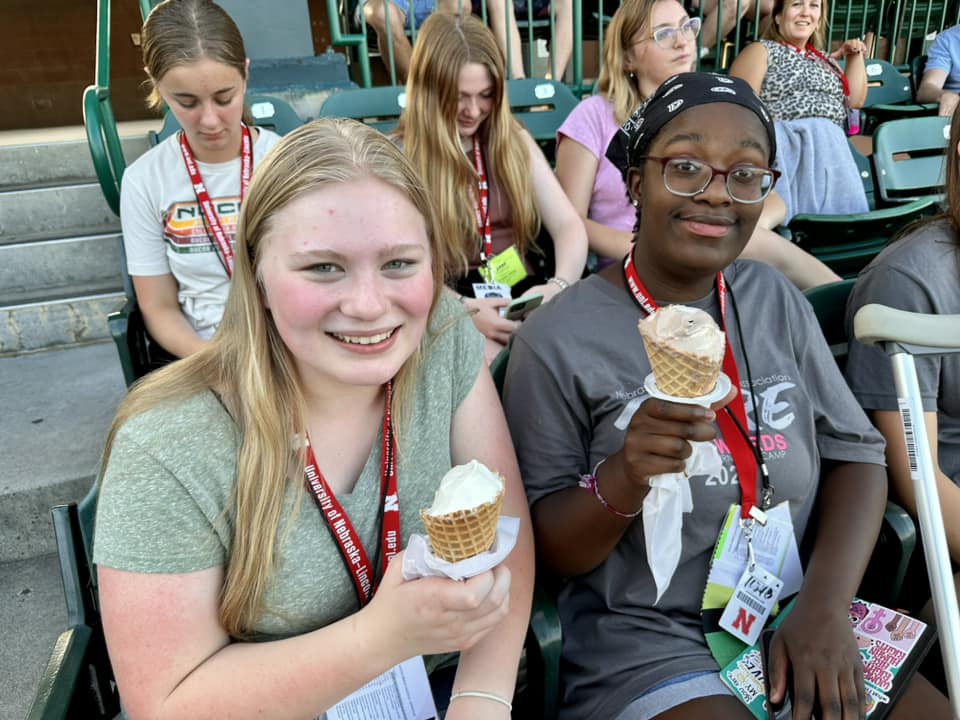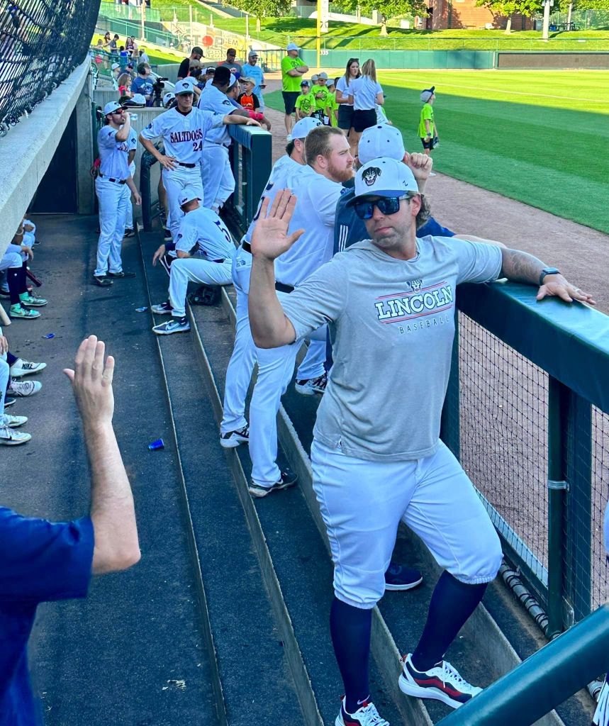 The Saltdogs play in the ballpark also occupied by the University of Nebraska baseball team. It’s a beautiful park and it was a lovely, somewhat warm, July evening. The game was relatively sparsely attended, by which I mean our group made up a decent amount of the crowd. But that turned out to be a blessing, as our students could interview and wander at will.