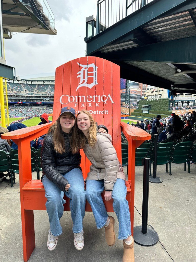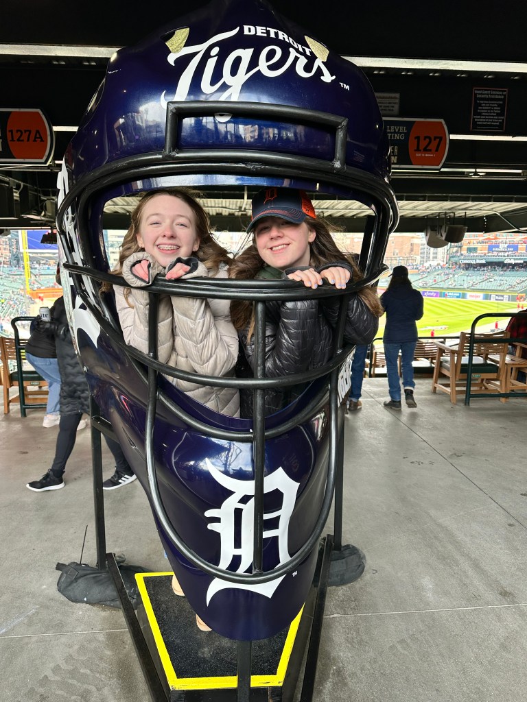 My daughter Dylan and I have been planning a trip back “home” to Michigan for a few months now, and it was a happy bit of luck that Tigers’ Opening Day fell during our spring break. So we left the mid-70s sunshine of Menlo Park behind to fly to the Arctic Circle of Detroit, where it poured down rain for a while earlier in the week, and then was super windy, and finally decided to go ahead and give us the full snow show on game day.