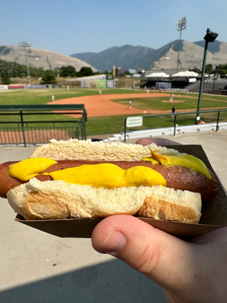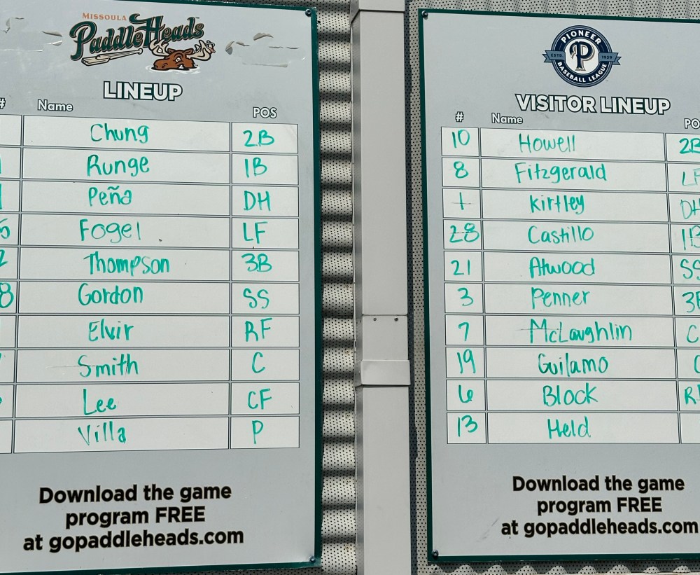 I’ve been to an Oakland Ballers game already in their initial season, but I’m waiting to make a return trip before writing a blog entry. So Ogren Park, home of the MIssoula Paddleheads, is my first official story about a Pioneer team. It’s an MLB ‘Partner’ league, which means it’s connected to MLB without the teams actually being affiliated with specific Major League squads. It does feel as if the players get signed to MLB teams fairly regularly, at least thus far this season; I think the Ballers have already had three or four guys make that jump. There are a number of familiar major leaguers who played minor league ball in Missoula: Former Tigers’ closer Jose “Papa Grande” Valverde, Adam Eaton, Jake Lamb, Jazz Chisholm, Jr., Justin Martinez, Geraldo Perdomo, and Paul Goldschmidt, who hit 18 homers for the team in 2009 as a 21-year-old.