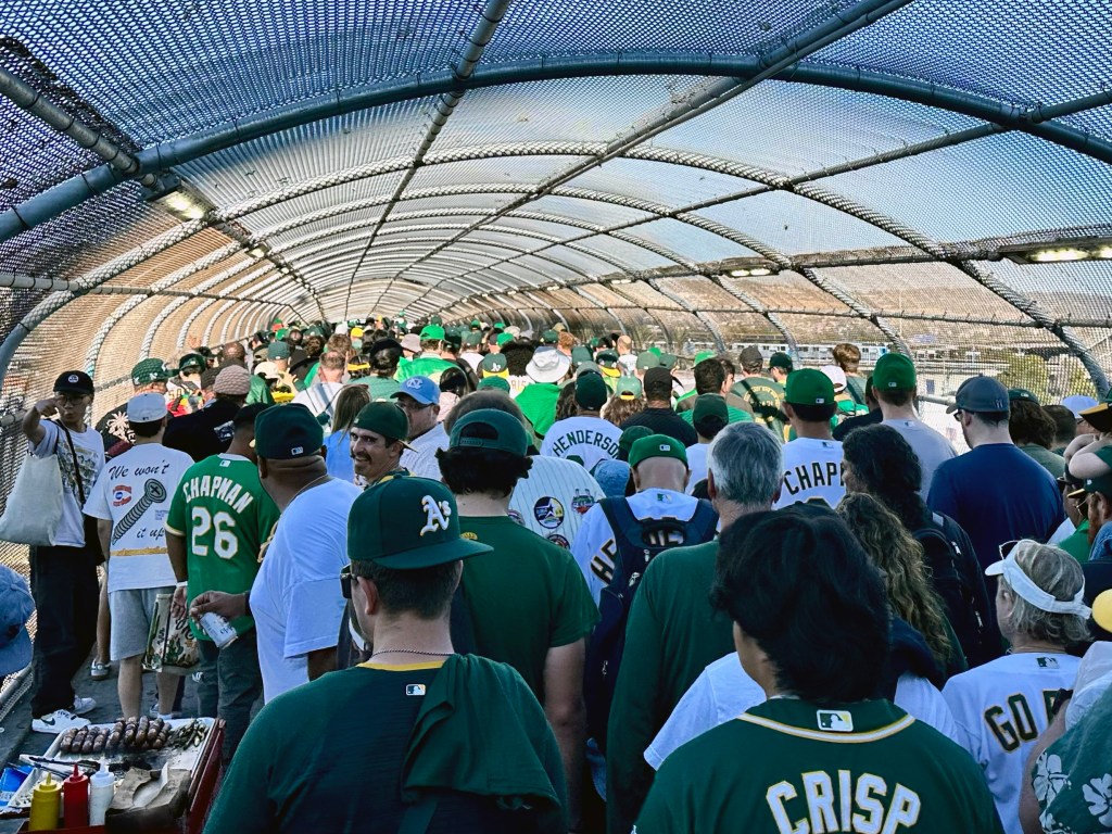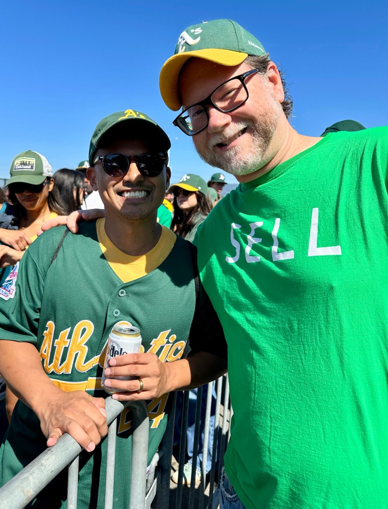 We laughed and cried and high-fived and fist-bumped, we cheered and booed, we screamed ‘sell the team’ and ‘let’s go Oakland’ and a few somewhat more profane and lyrical chants. My wife Leigh and I walked the entire concourse in the sixth inning and again after the game ended, when no one really wanted to leave, and then we did a full circle of the stadium parking lots before getting back on the BART train where, to no one’s surprise, the entire train car sang along to the Beastie Boys “Fight for your right to party” on somebody’s speaker.